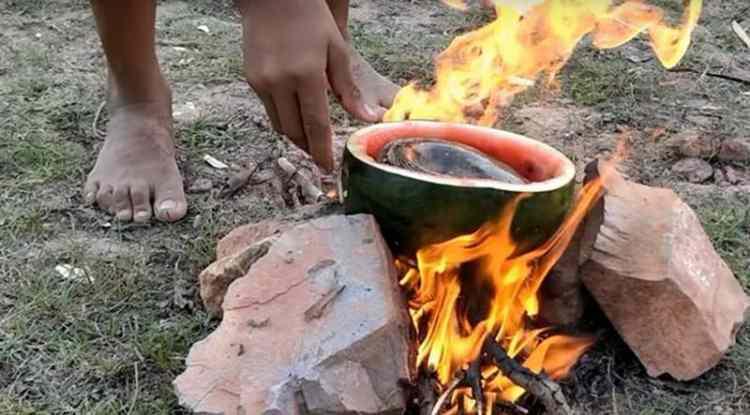 Karpuzun içine koyarak pişirdi! Sosyal medyada viral oldu