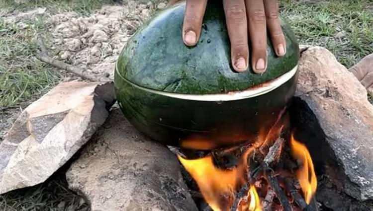 Karpuzun içine koyarak pişirdi! Sosyal medyada viral oldu