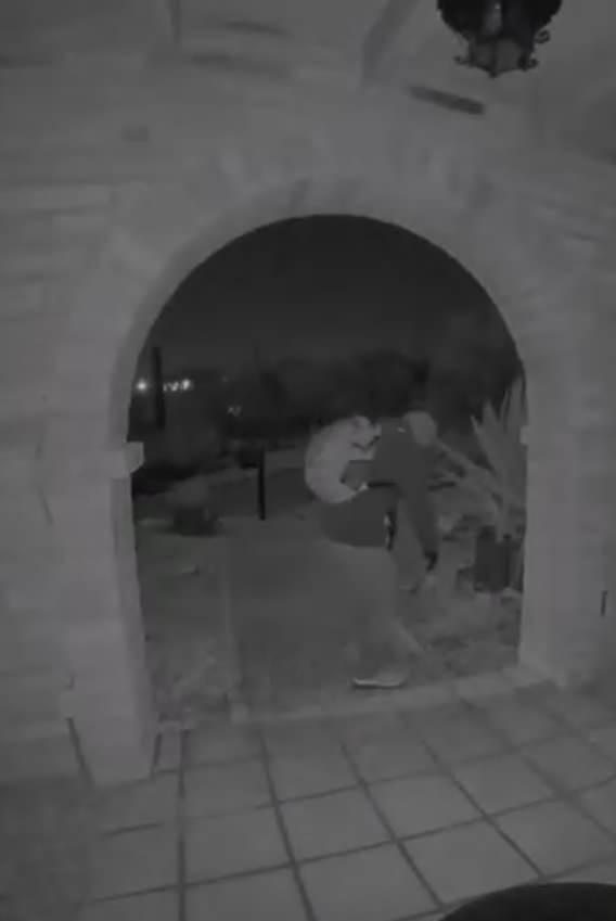 Elde edilen görüntülerde ki maskeli kişinin, kapının önüne gelerek kamerayı kontrol ettiği ve evin bahçesinden aldığı otlar ile kamerayı kapatmaya çalıştığı görülüyor.