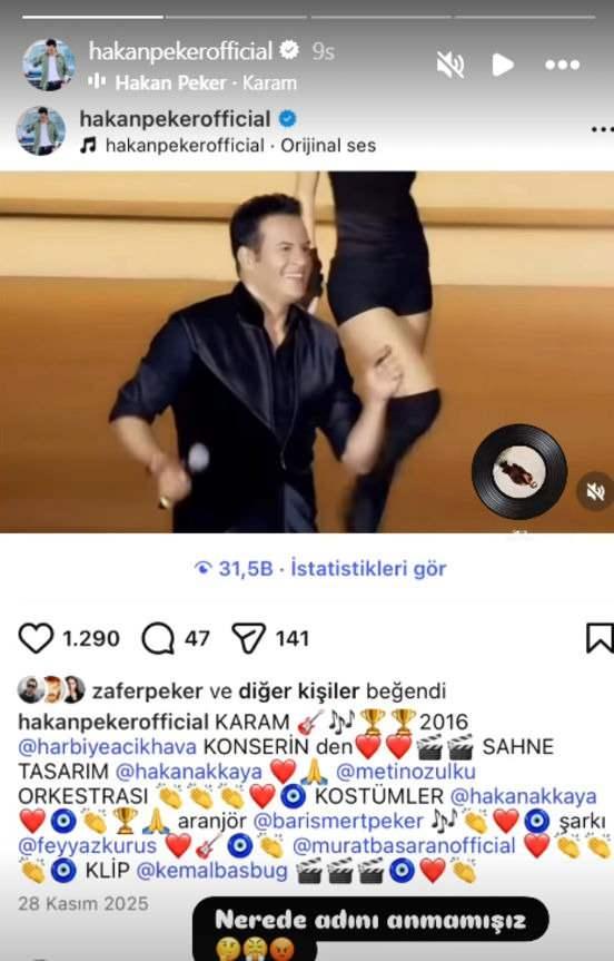 Peker'e sitem eden Başaran'ın bu sözleri, ikili arasında iplerin gerilmesine neden oldu. Meslektaşının açıklamalarına çok sinirlenen Hakan Peker, sosyal medya hesabından bir konser görüntüsü paylaşarak, künye kısmında Feyyaz Kuruş ve Murat Başaran'ın isimlerine yer verdi ve "Nerede adını anmamışız?" sözleriyle tepki gösterdi.