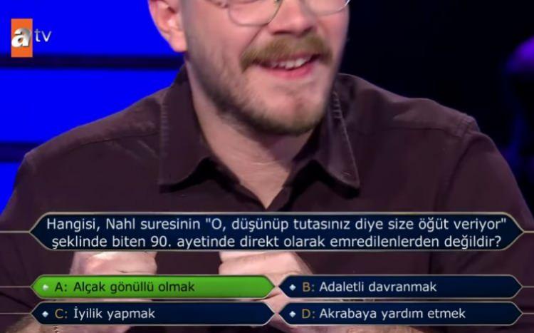 Milyoner'de nefesler tutuldu: Kur’an’ın “en kapsamlı ayeti” sorusu yarışmacıya ter döktürdü