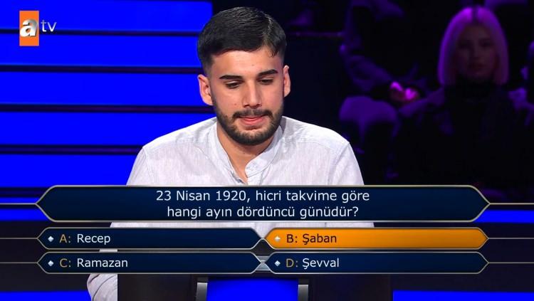 Genç yarışmacı, yanıt verseydi "B- Şaban" seçeneğinde karar kılacağını söyledi.