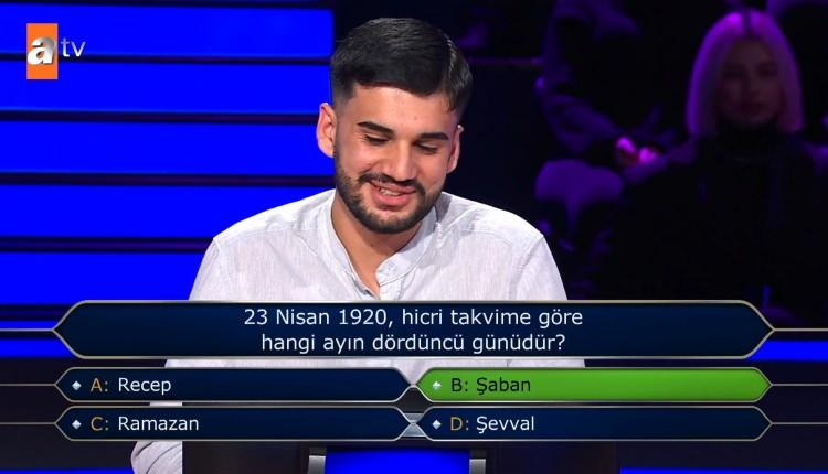 Doğru yanıt ise yarışmacının da tercihi olan "B" şıkkıydı.