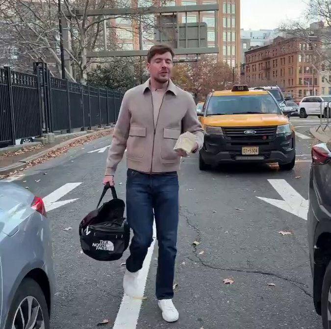 Asıl adı Jimmy Donaldson olan ABD'li içerik üreticisi, bir gün boyunca elinde bir çantayla kırmızı ışıkta ya da trafikte bekleyen sürücülerin araç camlarına yaklaşarak "1.000 dolar ister misin?" diye sordu.