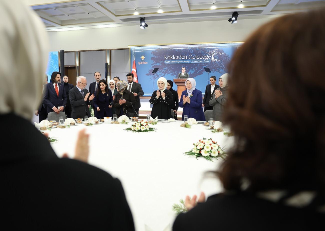 Emine Erdoğan, AK Parti Kadın Kolları Başkanlığınca AK Parti Kongre Merkezi'nde düzenlenen "Köklerden Geleceğe Kadın Kolları Teşkilat Çalıştayı"nın kapanış programına katıldı.