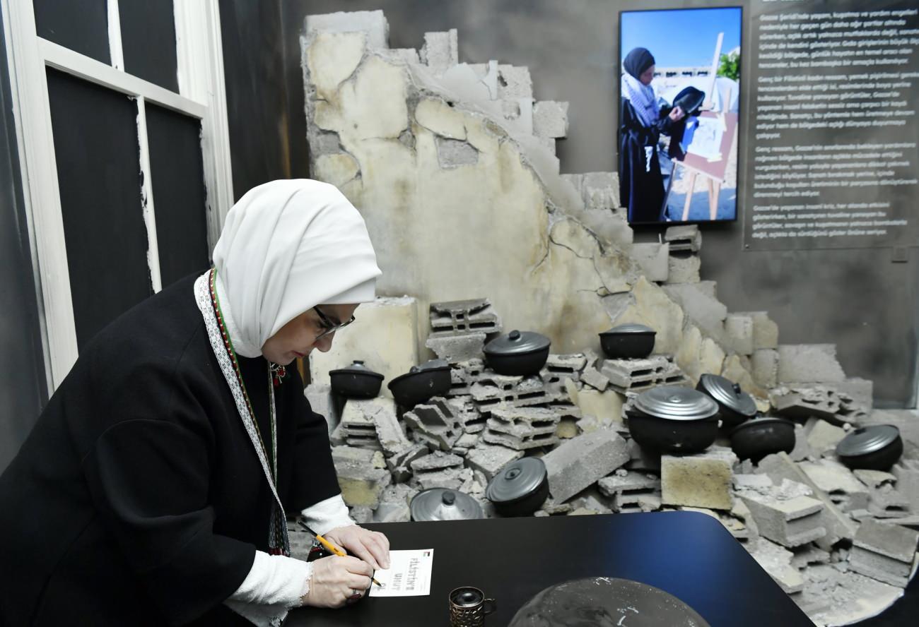 Cumhurbaşkanı Recep Tayyip Erdoğan'ın eşi Emine Erdoğan, önceki gün açılışını gerçekleştirdiği "Kalanlar" Filistin Sergisi'ne ilişkin paylaşımlarda bulundu.